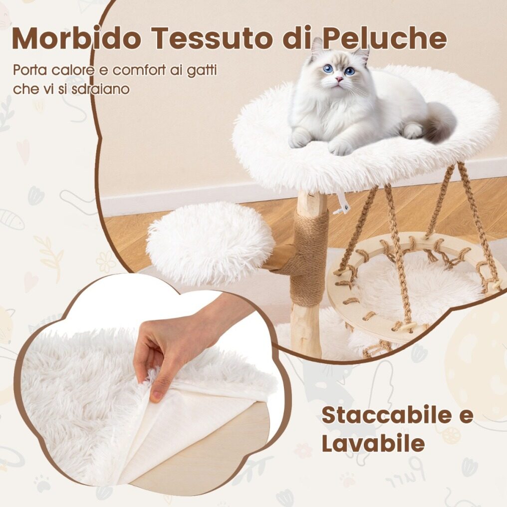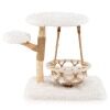 Natural Solid Wood Trunk: Constructed from a solid pear wood trunk, this cat tree offers superior reliability compared to traditional paper tubes. Its unique shape, paired with elegant white cushions, also adds a touch of sophistication to your home decor.