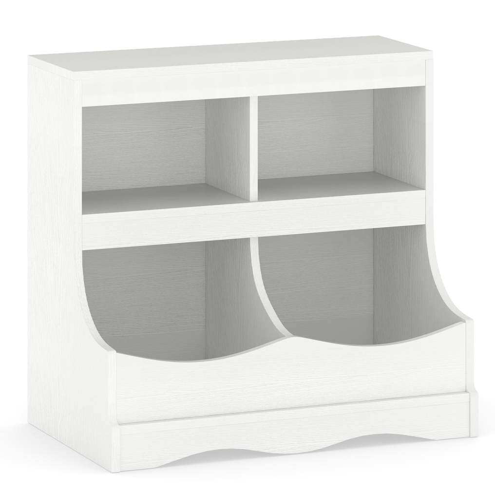 ● Child-friendly Design: This 4-cubby bookcase stands 24.5" tall, making items in every cubby easily accessible for kids. Crafted from safe materials and featuring smooth round corners, it creates a safe environment for young readers and playful toddlers.