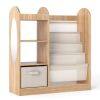 ● Child-Safe Wooden Build: Crafted from sturdy MDF and pine wood with smooth rounded corners, this Montessori toddler bookcase prioritizes safety and quality. It also complies with ASTM and CPSIA for higher reliability.