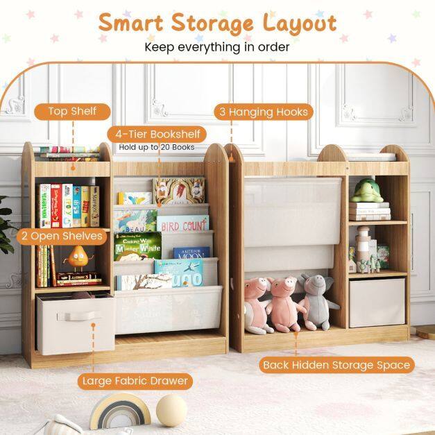 ● Functional Mirror and Hooks: Equipped with a full-length mirror on the left this toy organizer makes it convenient for kids to tidy up. Moreover, 3 hanging hooks on the left helps little ones keep their clothes and belongings tidy.