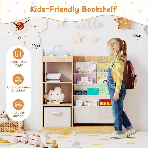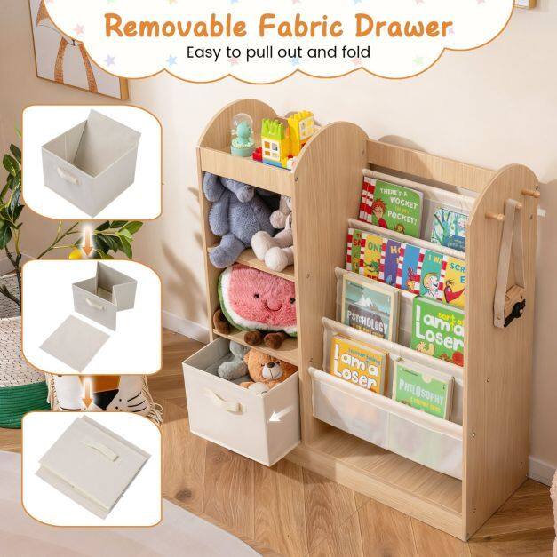 ● Removable Fabric Drawer: The bottom fabric drawer on this kids bookshelf is easy to pull out and fold without tools, providing simple and versatile storage for toys, books, and other nursery essentials.