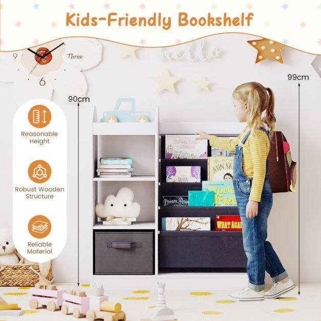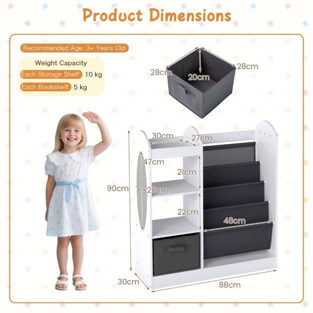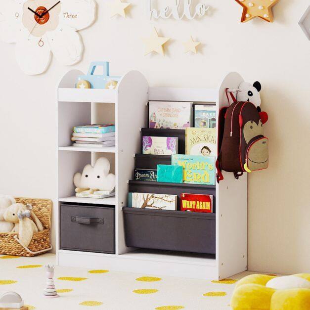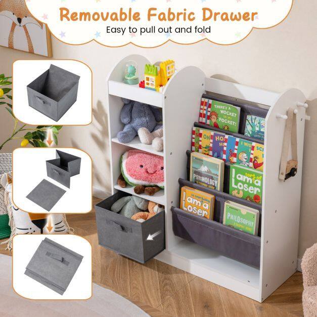 ● Removable Fabric Drawer: The bottom fabric drawer on this kids bookshelf is easy to pull out and fold without tools, providing simple and versatile storage for toys, books, and other nursery essentials.