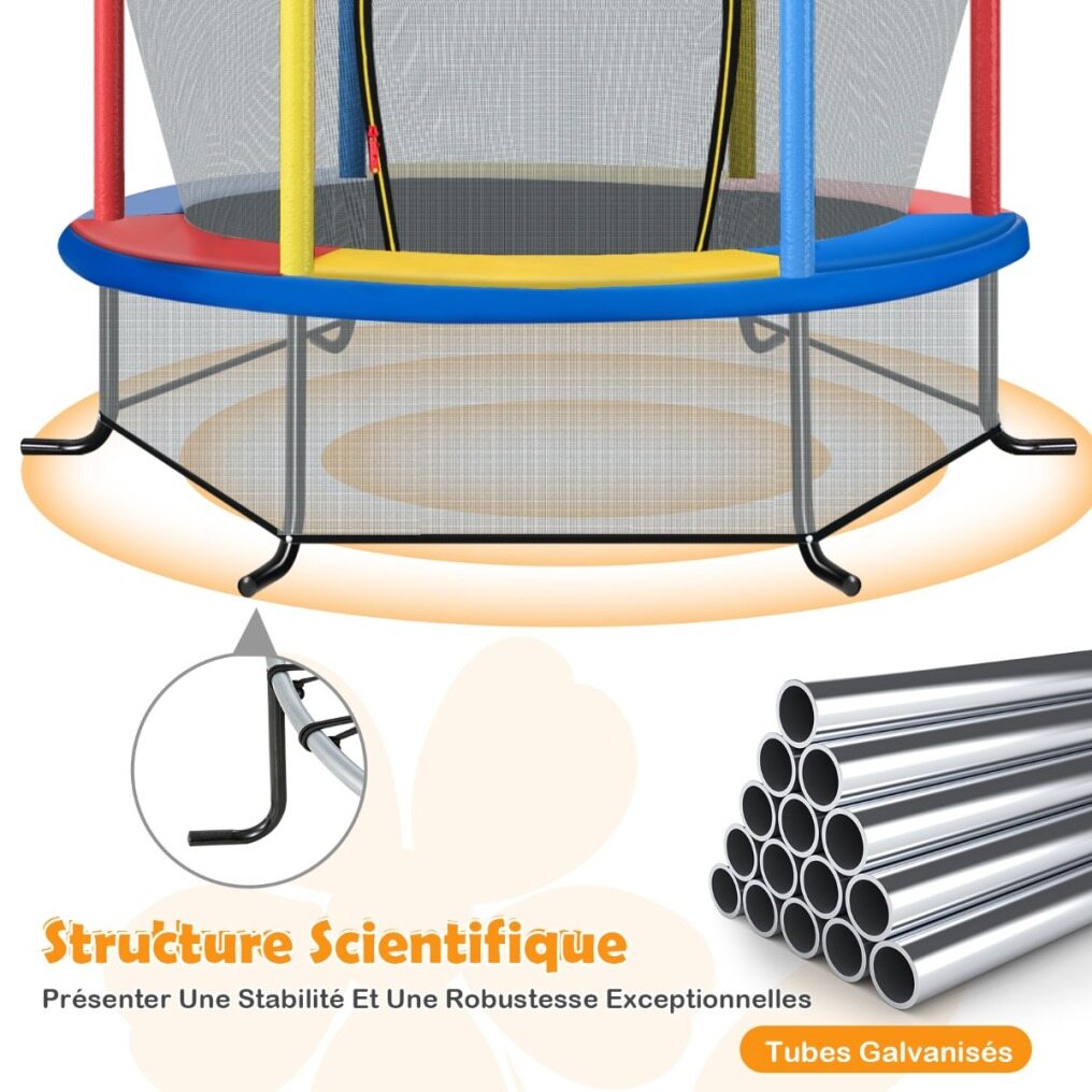 【Safety Net Provides All-Round Protection】The 360° safety net is designed to provide all-round protection for children's safety and prevent them from being accidentally thrown out. In addition, the bottom net also prevents children from slipping under the trampoline. And the straight feet can improve the stability of the trampoline, preventing it from tipping over and thus keeping the child safe.