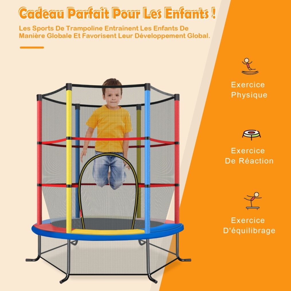 【Sturdy Structure & Selected Material】With a net weight of only 10.8kg, the trampoline can be easily moved anywhere you want. Measuring 165cm x 165cm x 161cm, it is the perfect size not only ideal for any room in your home, but also for use in parks, yards, gardens and other outdoor spaces. Available in 4 colors: red, navy blue, colorful and green, this trampoline is the ideal gift choice for children.