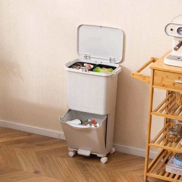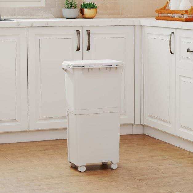 Innovative Multi-Section Design: The trash can features 24.5 L removable bins and a spacious 15.5 L lower compartment, perfect for sorting recyclables, compost, and trash. Included garbage classification stickers make classification simple and effective.