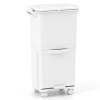 The included classification stickers make sorting a breeze. With its foot pedal and easy-open lid, disposal is a convenient experience. Move the trash can easily with 4 universal wheels, 2 lockable for stability, across any surface. Versatile and practical, it is perfect for kitchens, living rooms, dining areas, and more, thanks to the convenient side handles for hanging bags. Maintaining this trash can is a simple task, with its smooth surface for easy cleaning, and assembly requires no tools, saving you time and effort. More user-friendly details await your discovery.