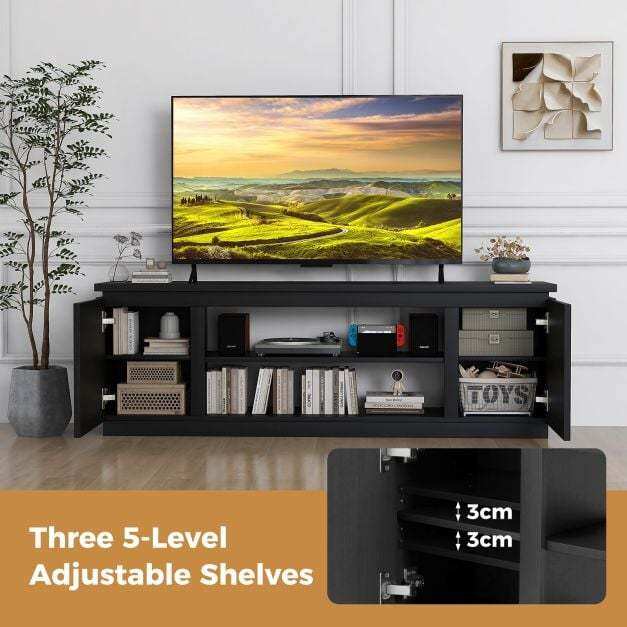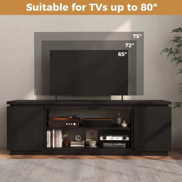 ● Perfect Display Platform: The 70" entertainment center features a wide countertop that accommodates TVs up to 80 inches. As needed, the TV stand can also work as a display cabinet for your beautiful decorations.