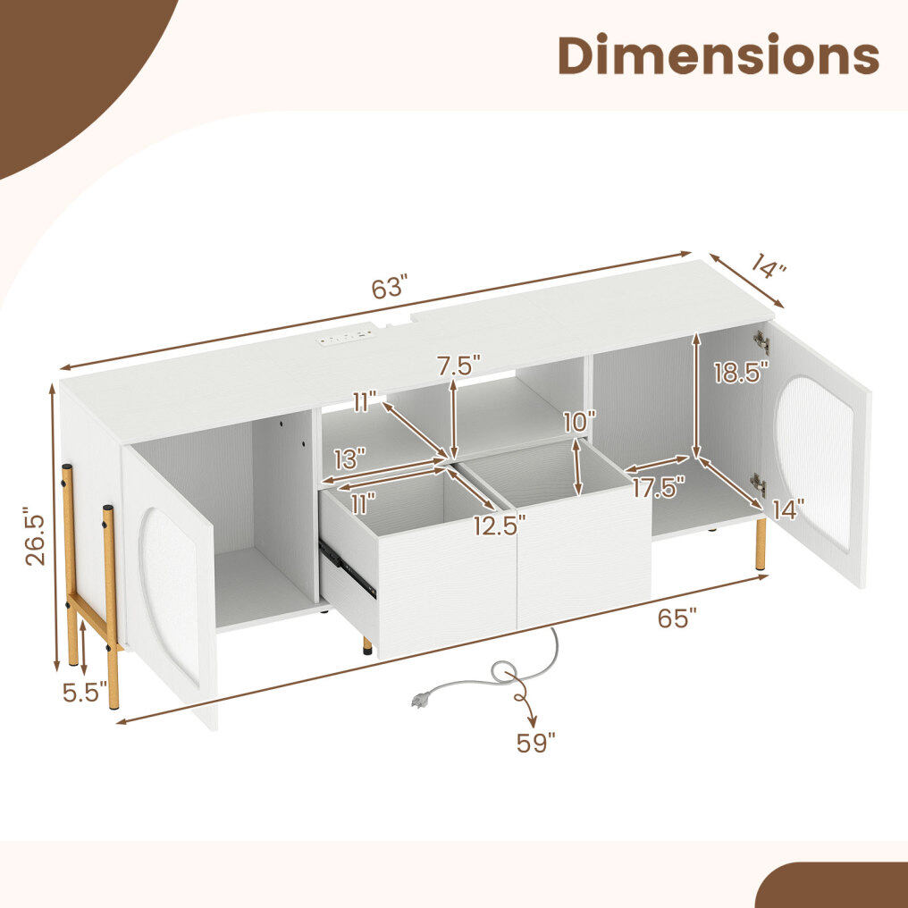 ● Versatile Utilization: Beyond just a 65"L x 14"W x 26.5"H TV stand, this versatile piece doubles as a chic storage cabinet or an elegant display cabinet. It is perfect for living rooms, bedrooms, entryways, studies, etc.