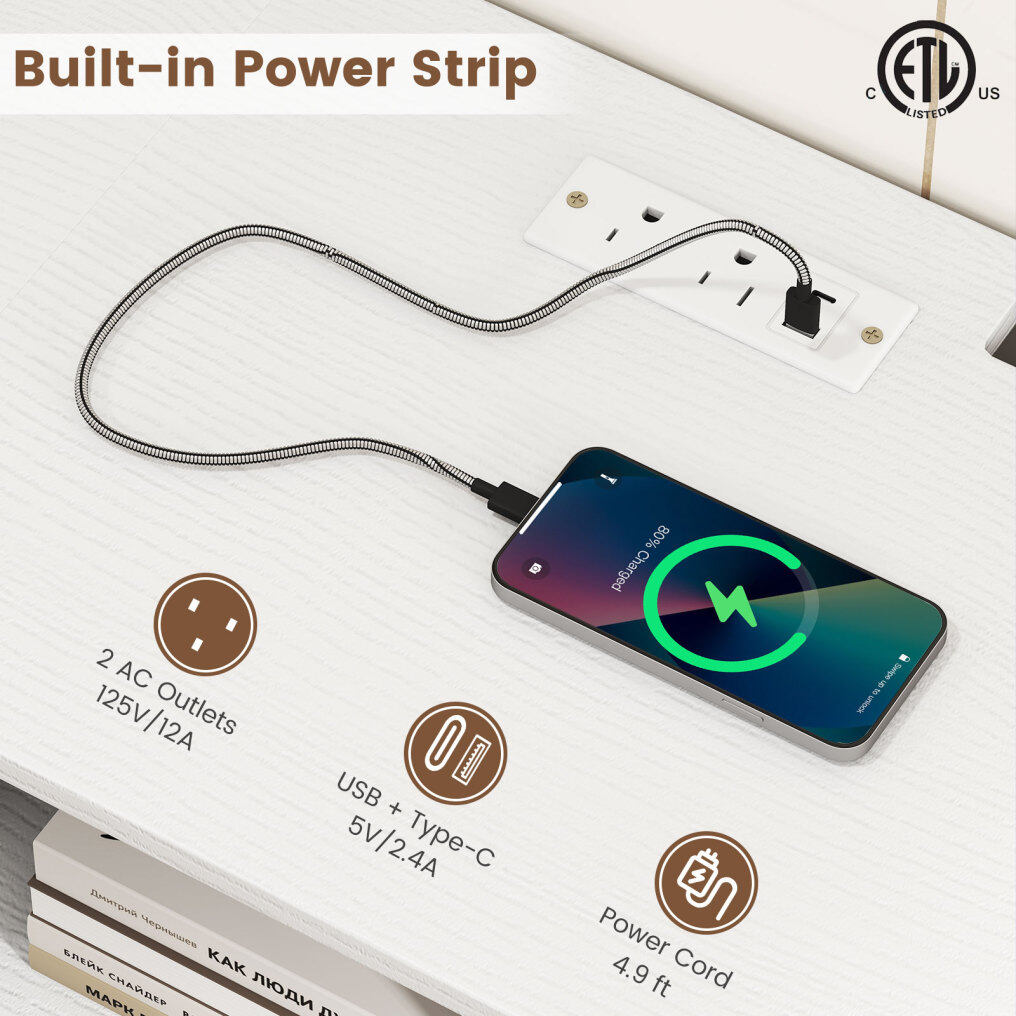● Integrated Charging Station: The TV stand features a built-in charging station with 2 AC outlets (125V/12A), USB and Type-C ports (5V/2.4A). Moreover, this stand comes with a rectangle cable hole that offers a tidy way charge your devices.