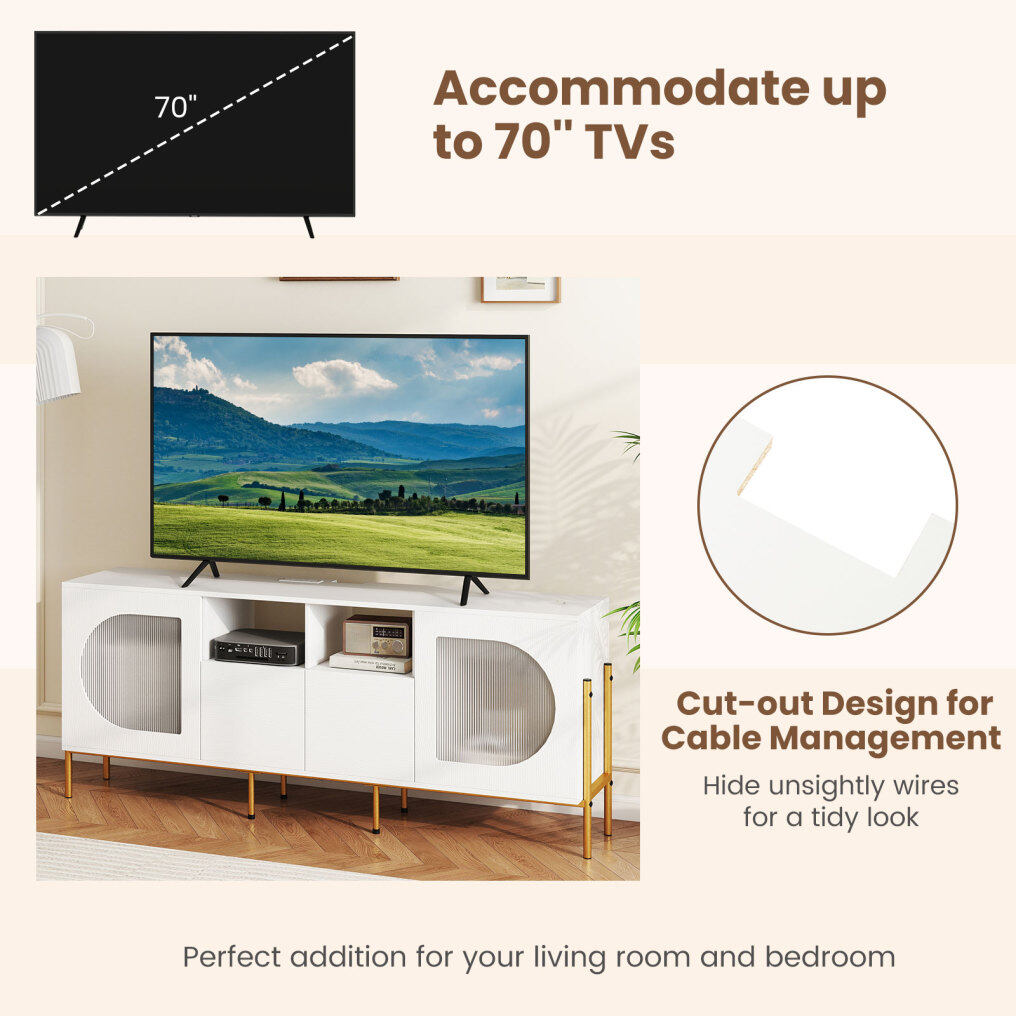 ● Contemporary Design: Elevate your living space with the sleek aesthetics of the TV cabinet. Showcasing elegant wavy PC doors that blend seamlessly into modern decorations, it not only serves as functional furniture but also as a statement piece that catches the eye.