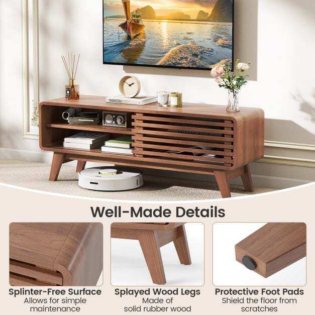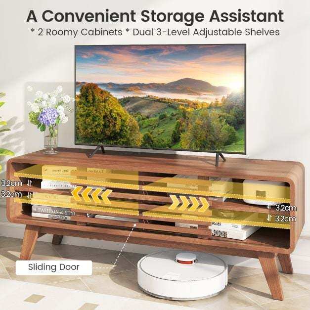 ● Ample Storage Space: Featuring 2 generous cabinets and dual 3-level adjustable shelves, this TV cabinet ensures organized storage for your electronics. The practical sliding door design allows you to create an open or concealed look in seconds.