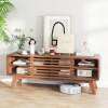 ● Superior Sturdiness: Crafted with splayed rubber wood legs, the media console table promises unmatched stability and a large countertop load capacity of 220 lbs. Fitted with protective foot pads, it shields your floors from scratches.