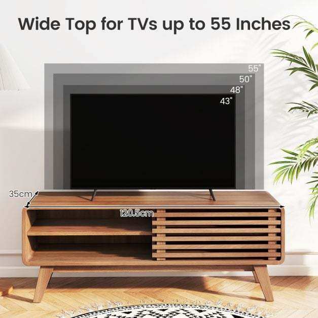 ● Suitable for 55-Inch TVs: Designed with a spacious 47.5"L x 14"W countertop, this TV stand easily accommodates TVs up to 55 inches, providing a perfect fit for your entertainment needs.