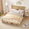 ● A Touch of Rustic Elegance: Picture waking up to the sophisticated allure of a hand-woven PE rattan headboard. Thus, the wood bed frame is a statement piece that brings enduring quality and a touch of nature into your bedroom sanctuary.