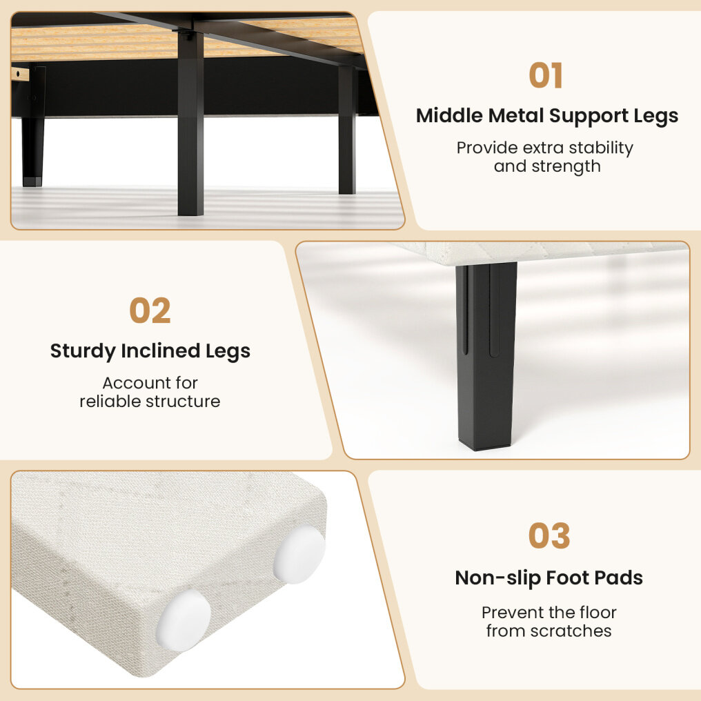 ● Sturdy Construction: Featuring 10 evenly spaced wooden slats and reinforced with middle metal support legs, this twin/full/queen size platform bed is built to last, supporting up to 500 lbs/800 lbs/800 lbs. Sturdy inclined legs with non-slip foot pads further enhance stability while protecting your floor.