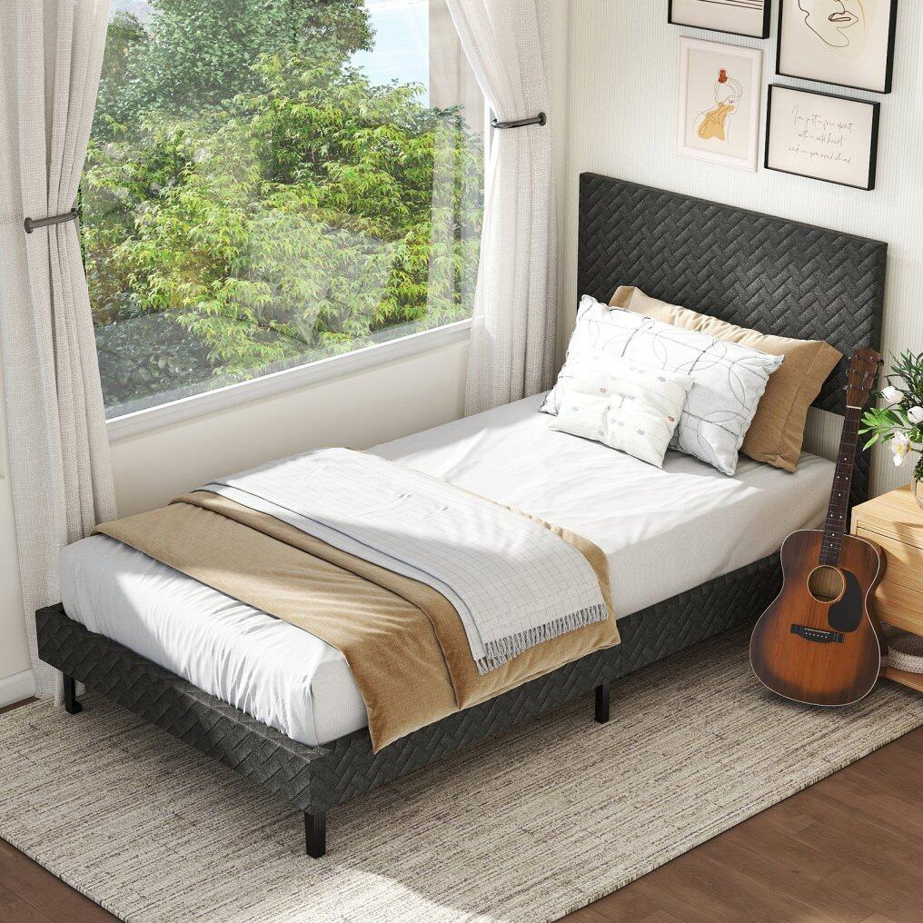 ● Upholstered Headboard for Comfort: Wrapped in velvet/linen fabric and filled with soft sponge, this upholstered bed offers a cozy backrest for lounging comfortably. The contemporary chevron pattern enhances your bedroom with elegance and aesthetic appeal.