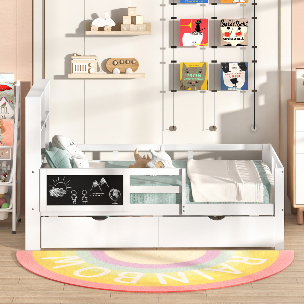 ● Ample Storage and Display Space: The bed frame features 2 pull-out drawers that provide ample storage space for toys, books or clothing. Additionally, the built-in bookcase offers convenient storage and display space, keeping a variety of items within reach.
