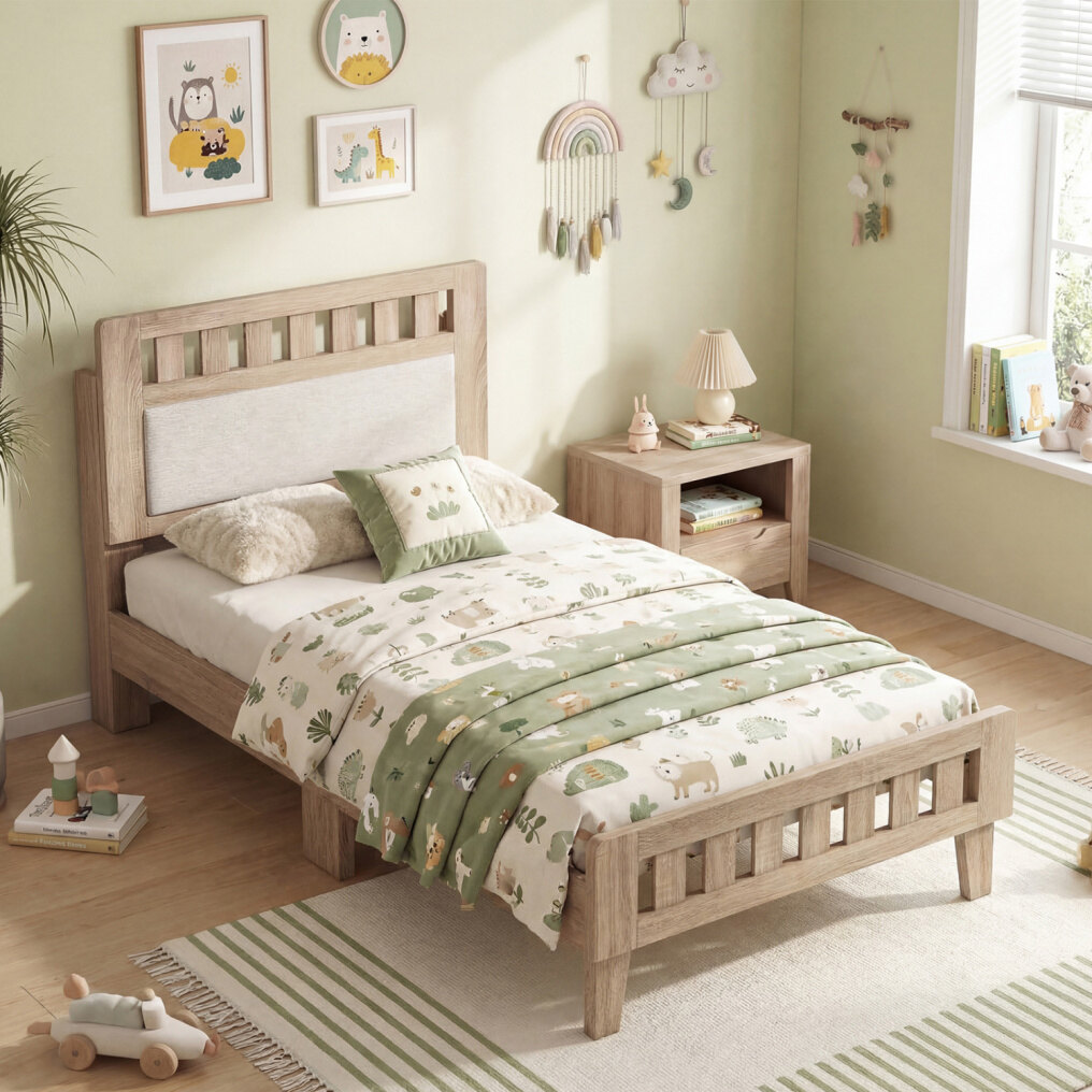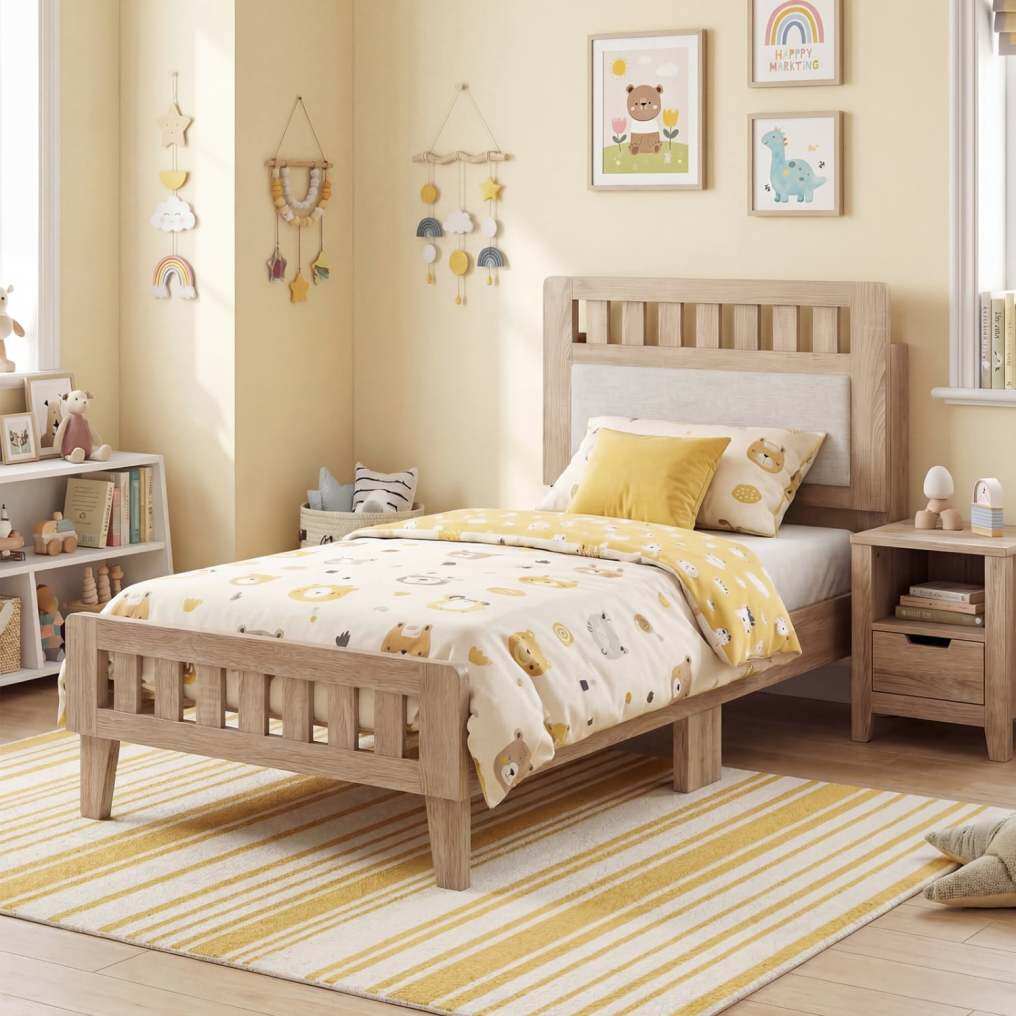 ● Refined Safety & Finish: Thoughtful details like rounded corners help prevent accidental bumps and scratches. The smooth, easy-clean finish ensures this wooden bed frame looks great with minimal effort.