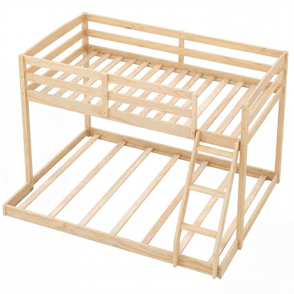 Twin Over Full Bunk Bed Low Floor Bunk Bed Frame-Natural
