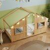 ● LED Light Strip: This kids' floor bed features a warm-glow LED light strip with 8 bulb lights, creating a cozy atmosphere for bedtime. The soft lighting enhances the playful design of the house bed, making it perfect for both sleep and play.