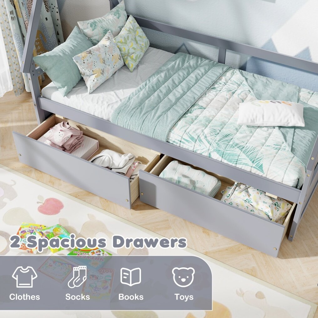 ● Convenient Storage Solution: Equipped with 2 large storage drawers on wheels, this twin daybed makes organizing your child's room breeze. These easy-to-access drawers offer ample space for storing bedding, toys, or clothing, keeping the room tidy and clutter-free.