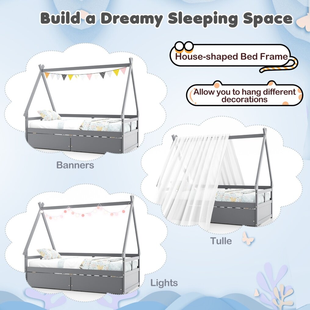 ● Creative Decoration Flexibility: This twin-size bed with house-shaped frame enables creative customization, allowing you to add personal touches with decorations and accessories. Ideal for enhancing the imagination and personal style in any child's room.