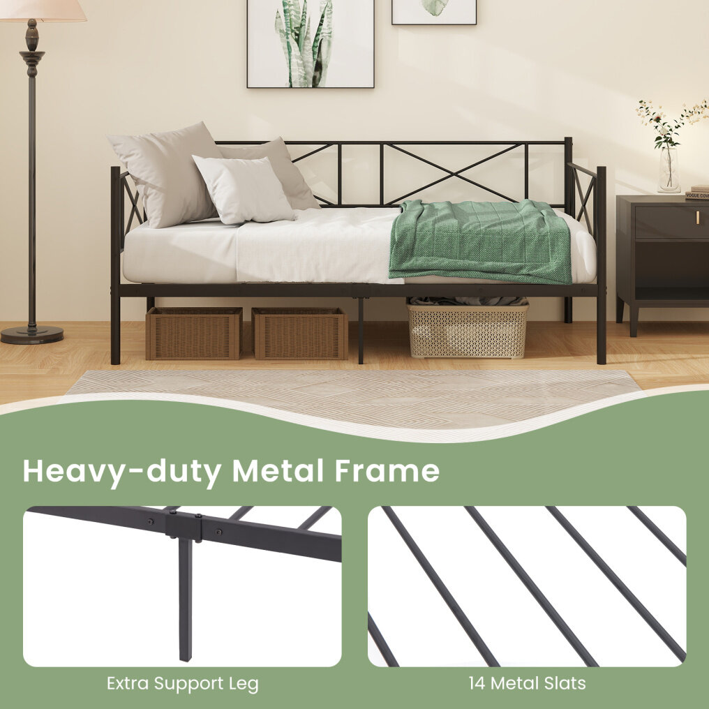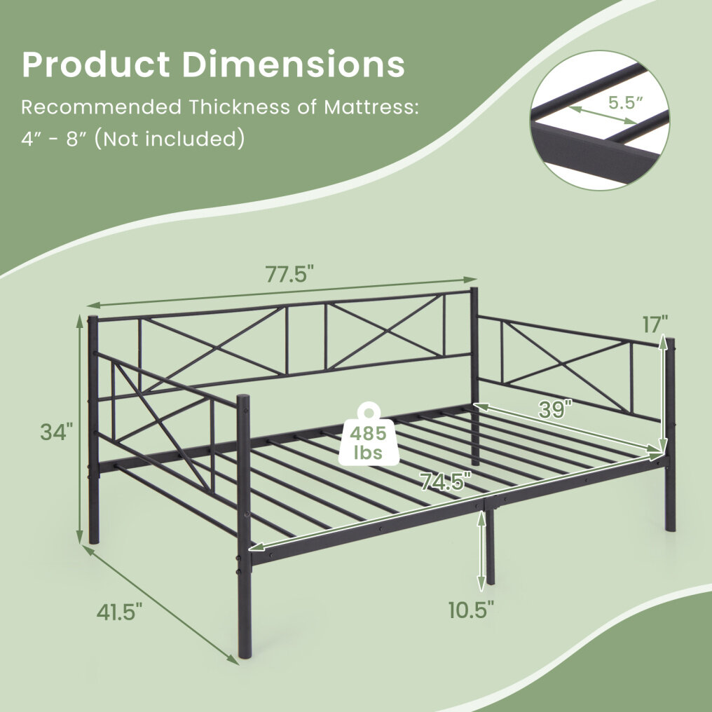 ● 2-in-1 Versatile Design: The twin metal daybed effortlessly transitions from a cozy sofa to a comfortable sleeper bed. It is perfect for small spaces, guest rooms, or living areas, enhancing functionality without compromising on style.