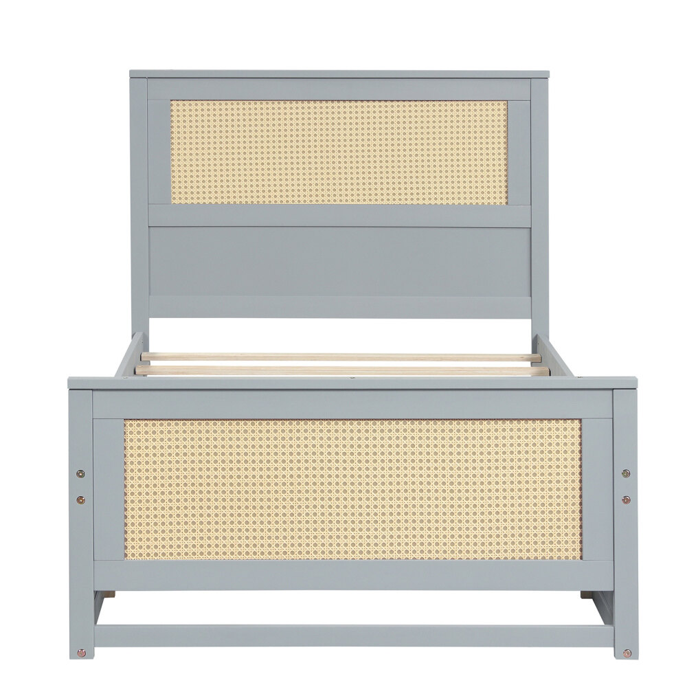 Twin Size Rattan Bed Frame with Storage Drawers-Gray