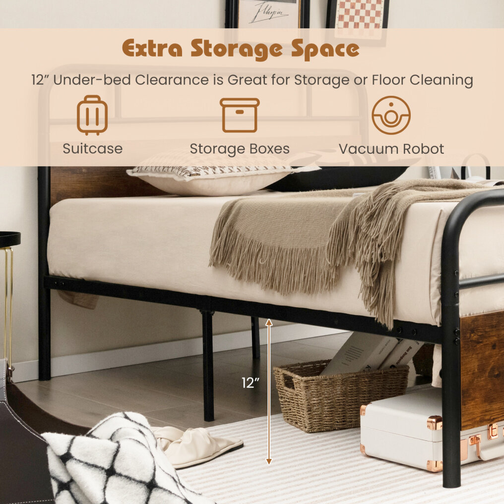 ● Industrial Headboard and Footboard: There is a rustic brown headboard and footboard to complement the matte black frame, making the platform bed a real focus point of your bedroom. And the headboard also helps isolate you from the cold, hard walls.