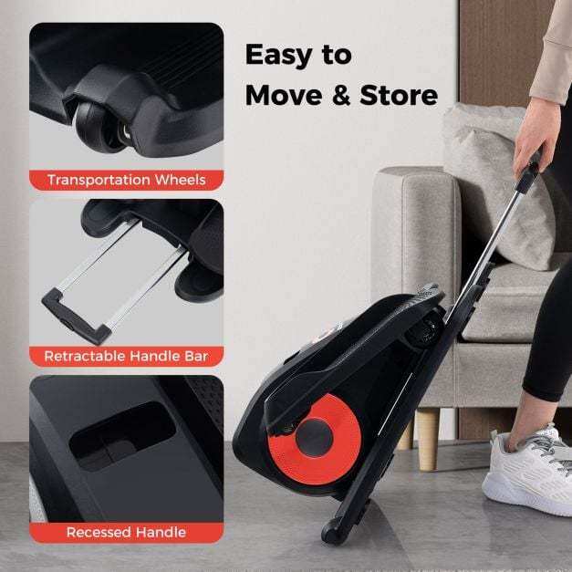 Ready to Use, Easy to Store: The ellipse exercise machine comes fully assembled, saving users time and effort on setup. It also features a retractable handle and transportation wheels for easy maneuverability and storage when not in use.