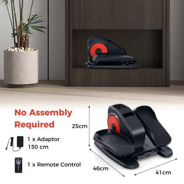 With its manual and automatic modes, you’re in full control—choose from 5 adjustable speeds and timed cycles or let the auto settings shake things up. Watch your progress in real time with a LED digital display or adjust on the fly with a handy remote control. Worried about noise? Our whisper-quiet motor ensures your focus stays on your health, not your environment. And when you’re done, glide it away with built-in wheels for easy storage. It’s ready right out of the box—no fuss, no muss. Get moving and stay active without stepping out of your house! Take the step towards a healthier, more vibrant you with our Under Desk Elliptical!
