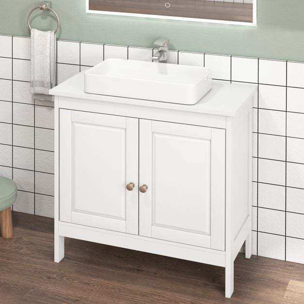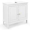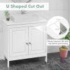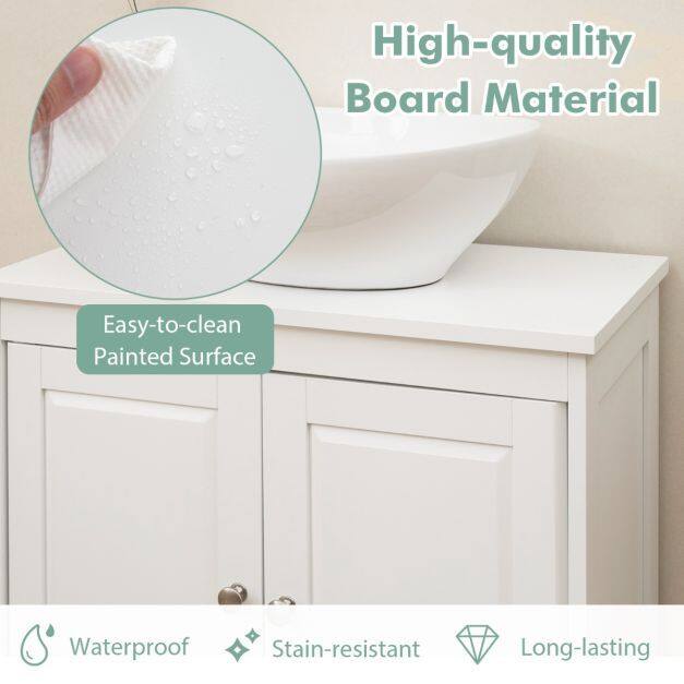 Equipped with 2 doors, a 3-position adjustable shelf and a spacious countertop with a U-shaped cutout, this bathroom under sink cabinet can keep all of your toiletries well organized and within easy reach. Moreover, made of premium boards with waterproof paint, it ensures long-lasting durability and allows for easy cleaning. With a compact size, this space-saving sink cabinet is a perfect storage solution for small bathrooms.