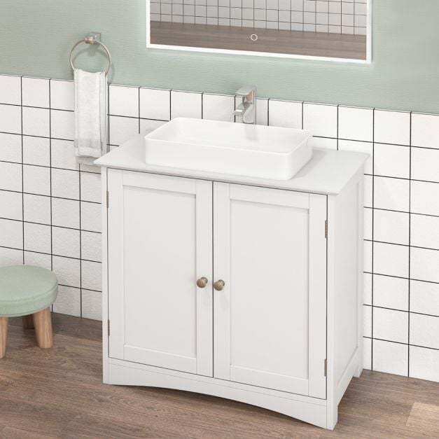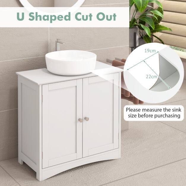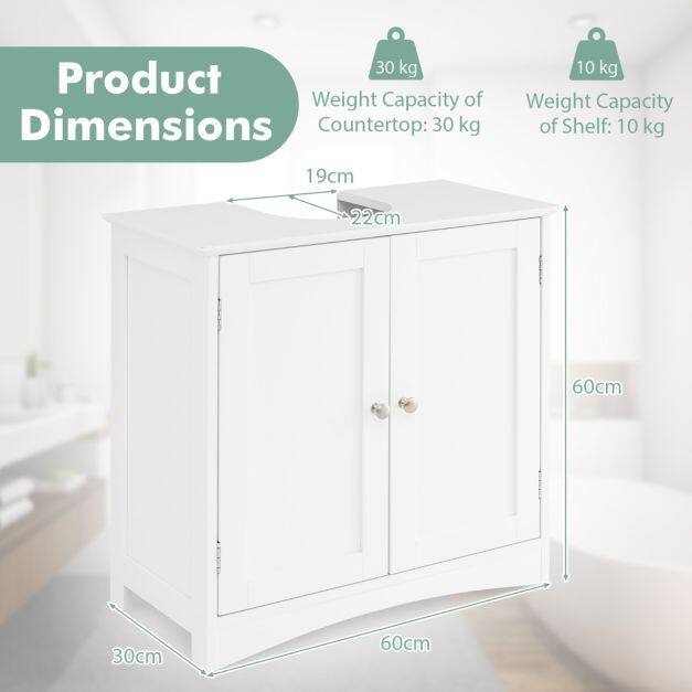 Space-saving bathroom: Thanks to the U-shaped cutout, this bathroom storage cabinet fits perfectly under your sink and makes optimal use of the unused space. With dimensions of 60 x 30 x 60 cm, this compact sink cabinet is ideal for small bathrooms. Please measure the size of the sink before purchasing.