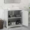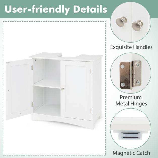 Upgrade your bathroom storage with this modern, space-saving vanity unit! Featuring 2 doors and a generous work surface with a U-shaped cutout, this bathroom vanity unit is perfect for keeping all your toiletries close at hand. Made from high-quality panels with a waterproof coating, it is durable and allows for easy cleaning. With its space-saving design, this compact vanity unit is ideal for small bathrooms and saves valuable floor space. Upgrade your vanity area with this functional and stylish cabinet.
