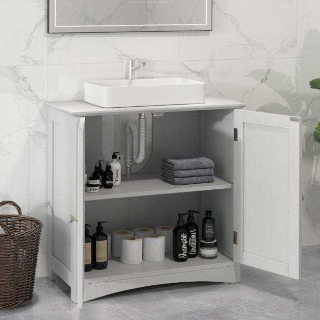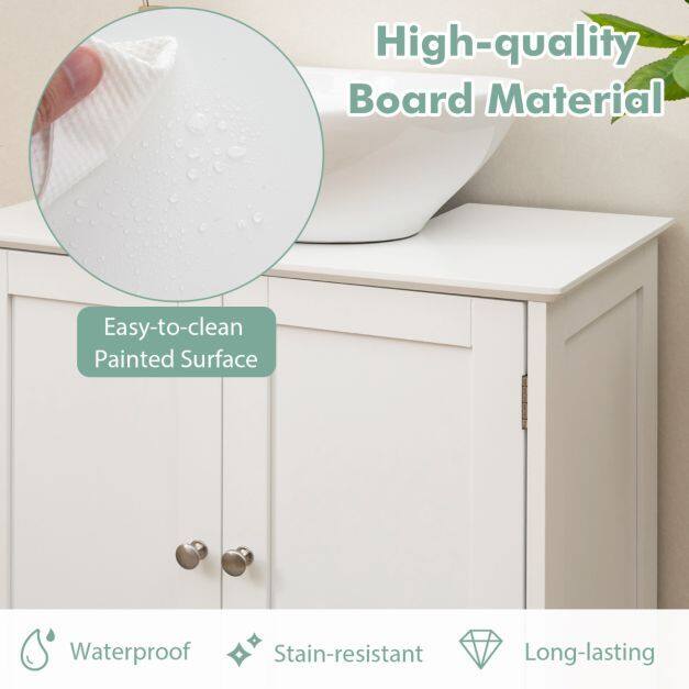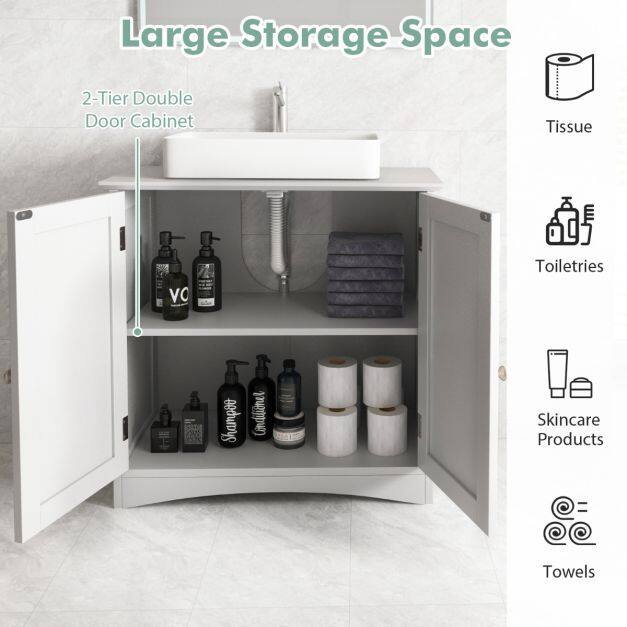 Large Storage Space: This 2-tier base cabinet with double doors provides ample enclosed storage space for your tissue, toiletries, skin care products, towels and more. It is a good storage solution to keep your bathroom organized and tidy.