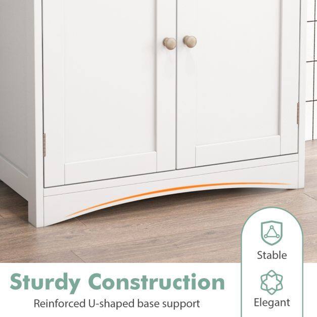 Sturdy Construction: Made of high-quality board materials with a stable connection, this freestanding base cabinet ensures great stability and durability. In addition, the reinforced U-shaped base provides additional stability and adds elegance.