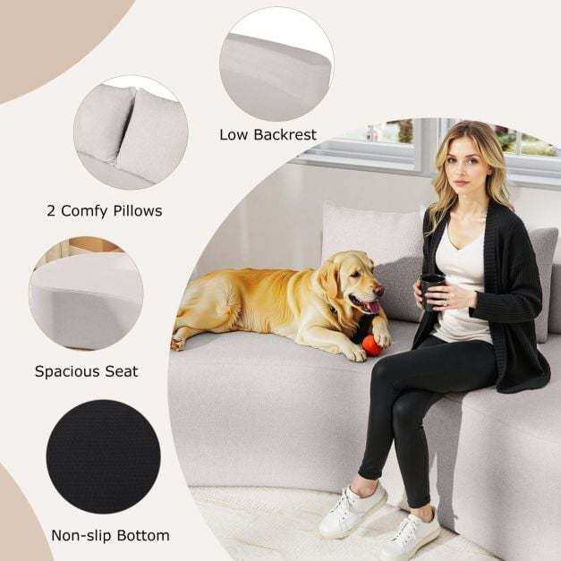 ● Unique Curved Sofa Couch: The moon-shaped design provides a warm and inviting feeling for your guests and adds a touch of modern luxury to your living space. Moreover, the curved structure also maximizes the seating area.