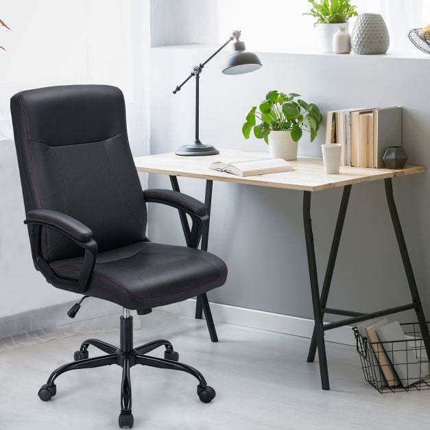 ● High-end Upholstery and Sleek Design: In addition to comfort, the office desk chair also provides you with style and superior durability. With its premium leathaire cover and tight stitching, our executive chair will elevate any office decor to the next level. The comfortable sponge padding will also last for long.