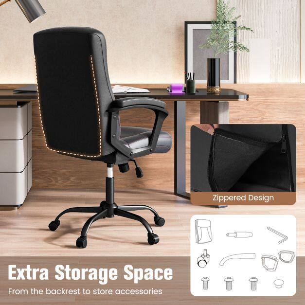 ● Easy Assembly: Where are the accessories? Right in the back! The zippered cavity in the back saves package space and protects the accessory kit well. Together with the easy-to-follow instructions, you can quickly put the upholstered desk chair together.