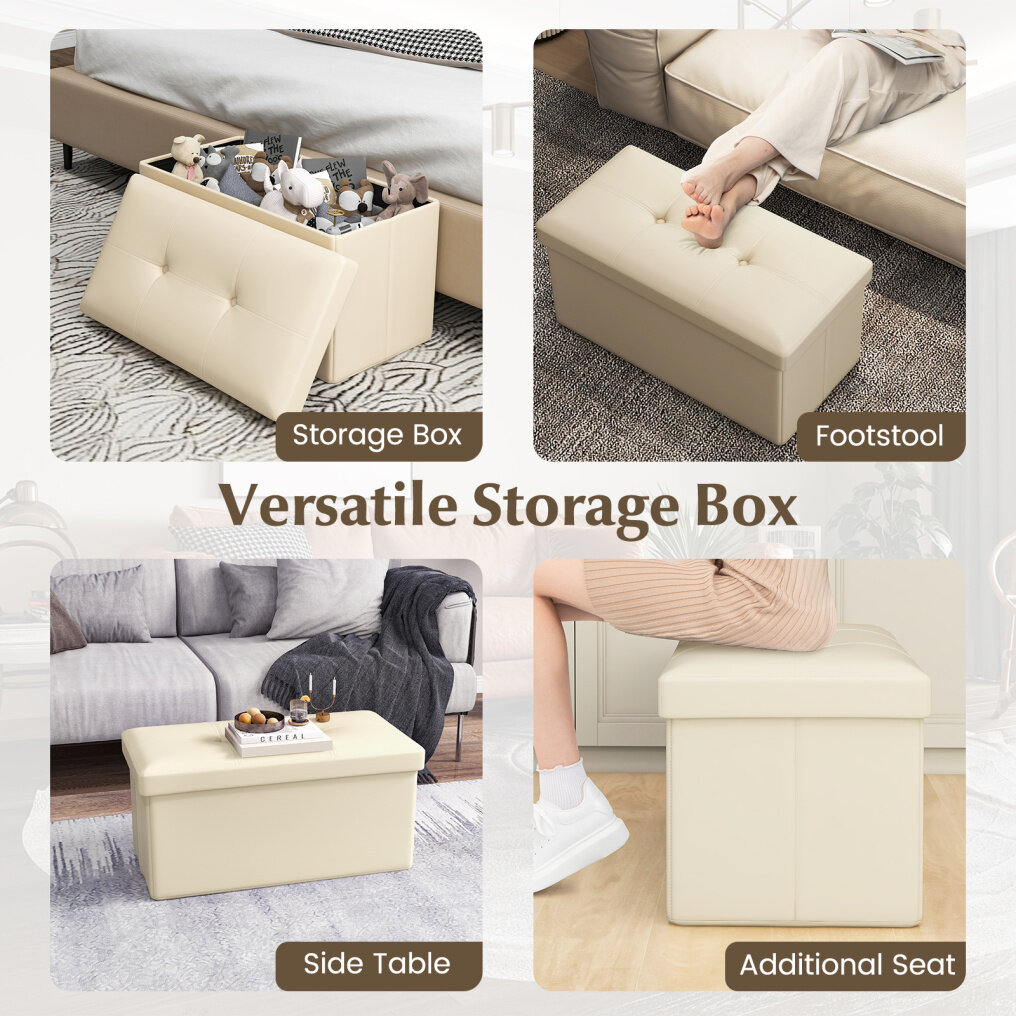 Tool-Free Setting up: The folding design allows you to set up the storage ottoman without any tools, which is effort-saving and time-saving. Overall dimension: 30” x 15” x 15” (L x W x H). Inner size: 30” x 15” x 3” (L x W x H).