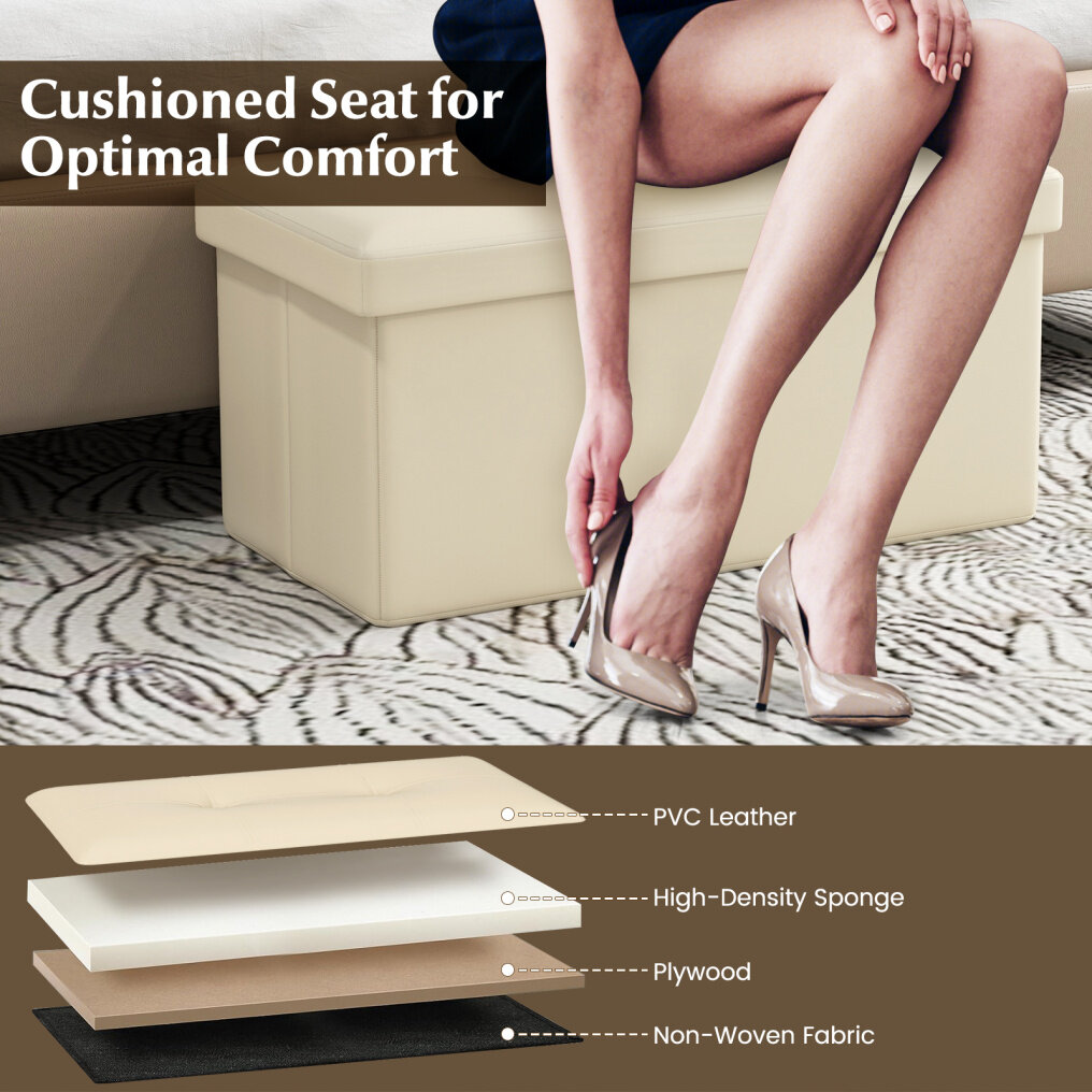 Enjoy Pleasing Comfort: The top lid is constructed of PVC leather, high-density sponge, plywood and non-woven fabric, making it a perfect cushioned seat for optimal comfort. Plus, the leather surface is waterproof and simple to maintain.