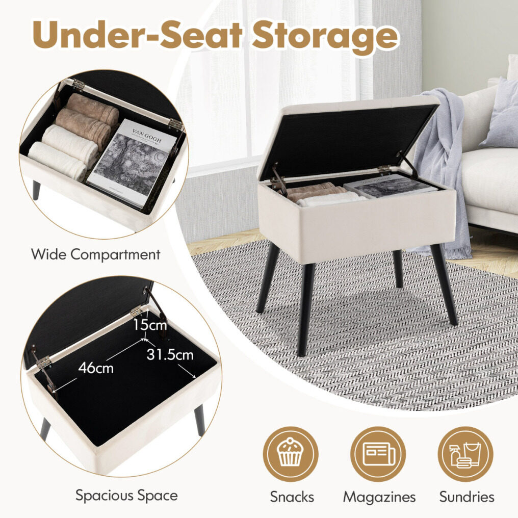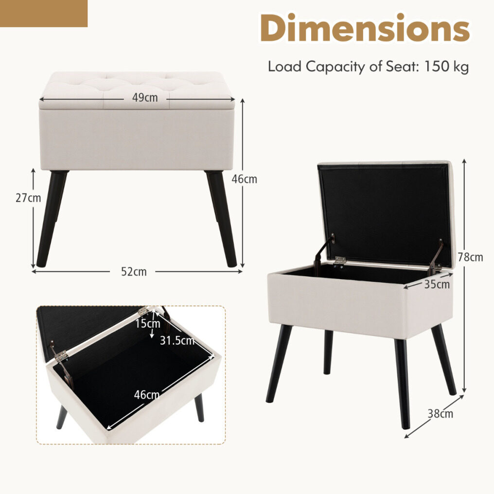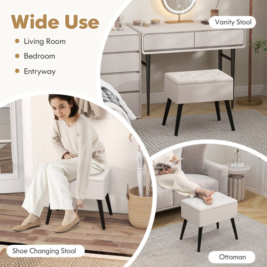 ● Hinged Lid and Storage Function: The hidden storage space of this stool makes it outstanding. It is equipped with a hinged lid, which is of high quality and able to withstand multiple times of opening and closing. It provides you with a great storage solution to organize your room.