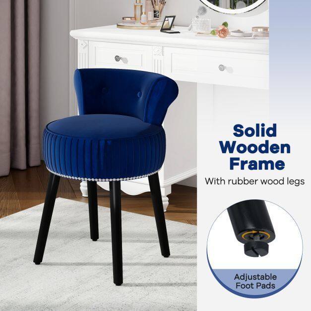Sturdy Construction: Crafted with a solid wood frame and sturdy rubberwood legs, this velvet vanity stool ensures long-lasting durability. Adjustable feet ensure greater stability and protect your floors from damage.