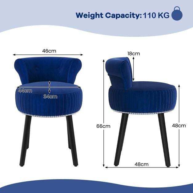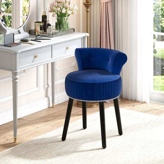Premium Materials: Upholstered in soft, skin-friendly velvet, this small vanity chair offers a silky, smooth seating experience. The seat and backrest are padded with dense foam for optimal support, ideal for daily makeup routines or relaxing in style and comfort.