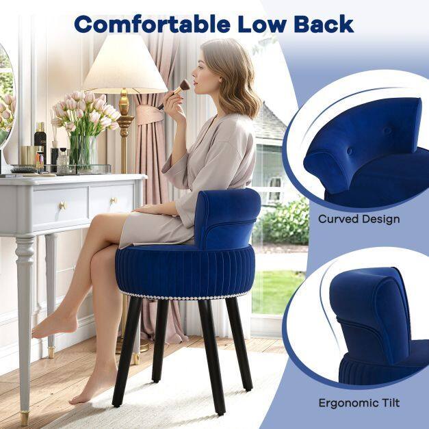 Bring timeless elegance to your space with this velvet vanity chair! Upholstered in skin-friendly velvet, the vanity chair offers a soft, silky seat, with thick padding in both the seat and backrest for enhanced support. The low, ergonomic backrest and gentle tilt provide ample lumbar support, while the curved silhouette hugs the body for long-lasting comfort. Constructed with a solid wood frame and sturdy rubberwood legs, this small vanity chair offers dependable durability.