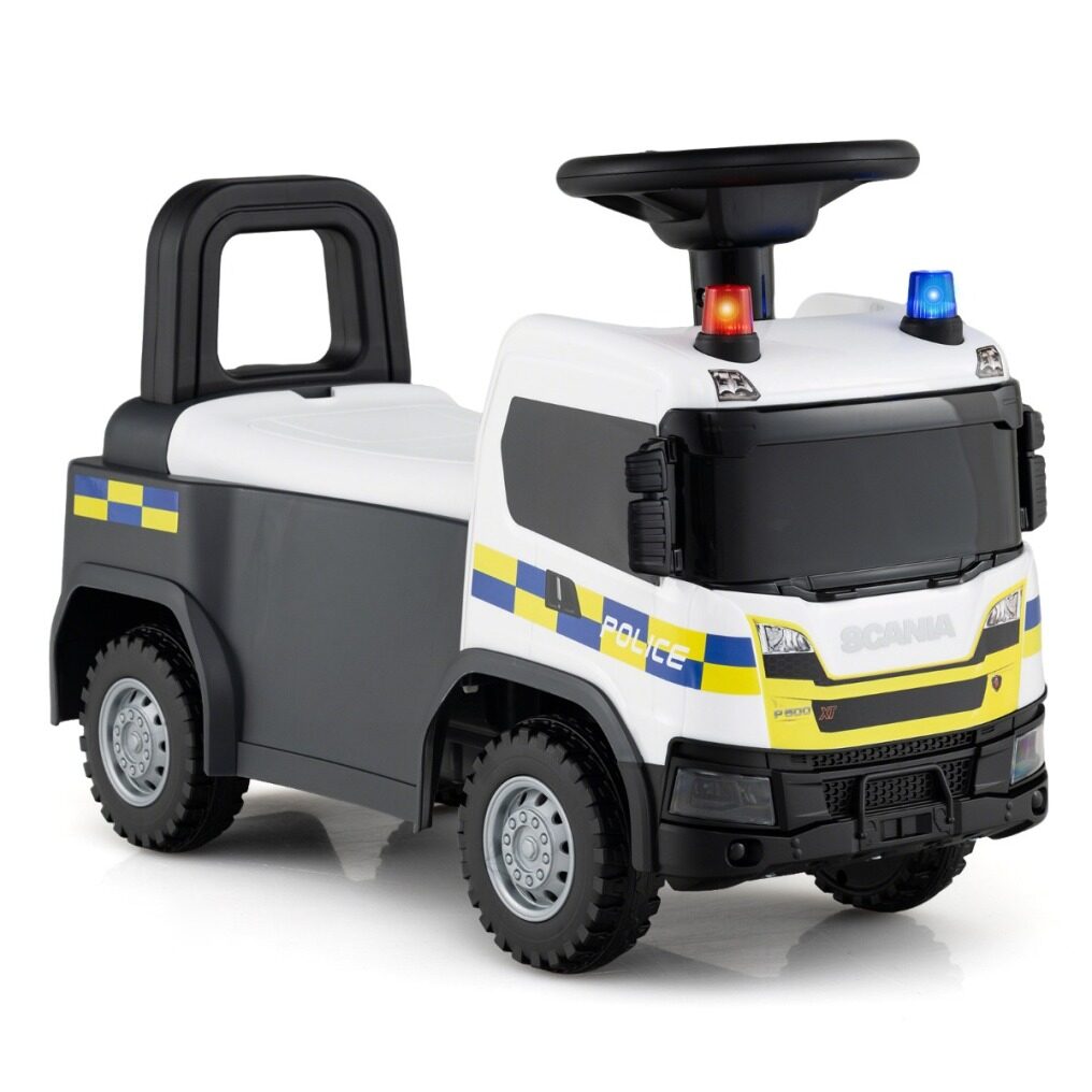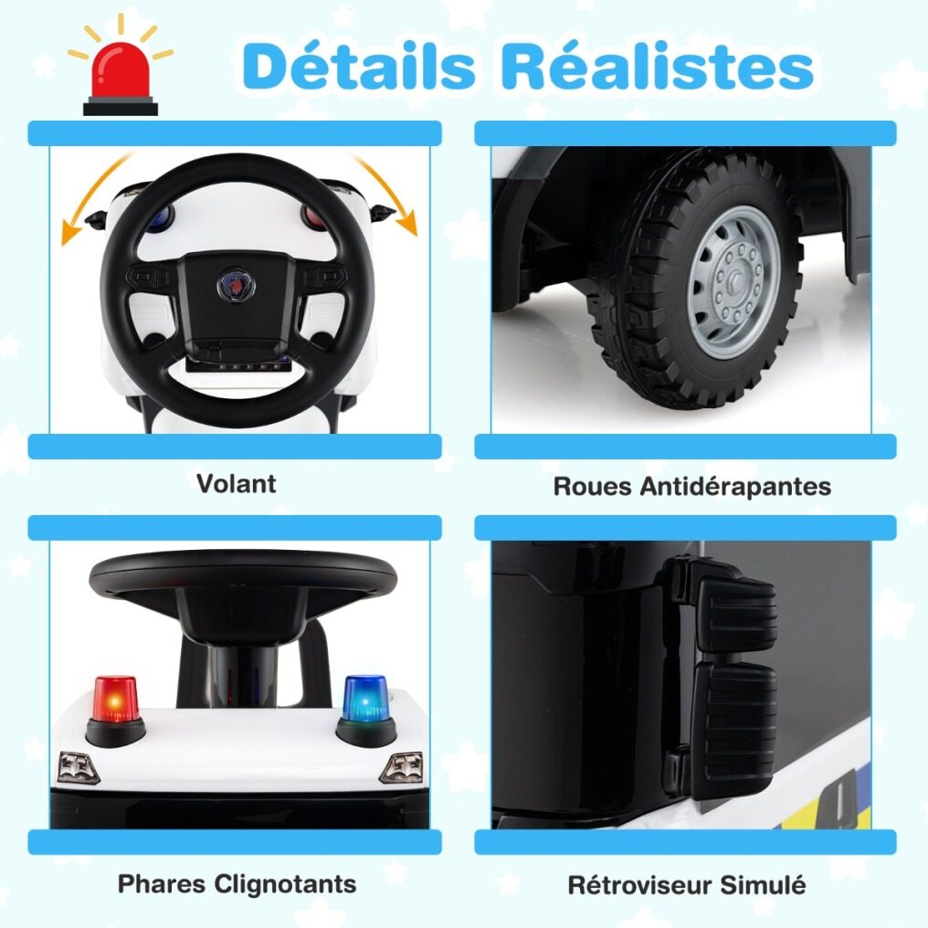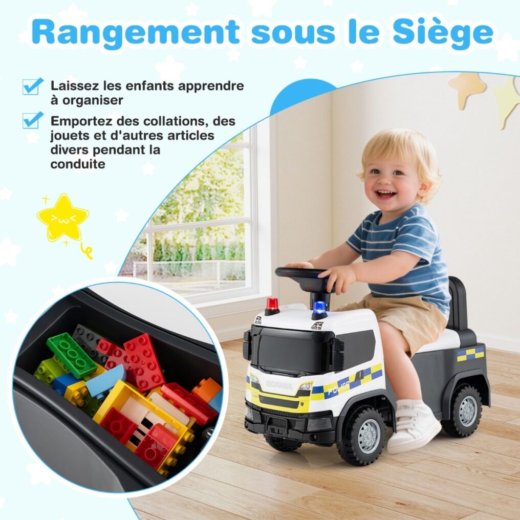 Give your little one a playful ride with our foot-on-the-floor glide car—perfect for children 18 months and up! With a seat height adjustment and a 50° steering lock for ultra-safe turns, this car rides smoothly and securely, ensuring no-fall fun—ideal for any toddler car collection. Discover a secret compartment under the seat, a fun space for snacks or favorite toys, keeping little treasures safe and the play area tidy. With exciting sounds—flashing lights, a roaring engine, and more—watch your child marvel as they conquer the neighborhood streets. Plus, the sturdy rear handle lets little ones propel themselves—a true champion of versatile toys.