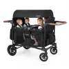 ● Comfortable & Secure Seating for 4 Kids: This wagon stroller comes with 4 detachable and soft padded seats, each featuring a heightened backrest for ultimate support and a 5-point safety harness to keep active toddlers safely in place on bumpy paths. The spacious room inside the stroller enables 4 kids to sit comfortably.