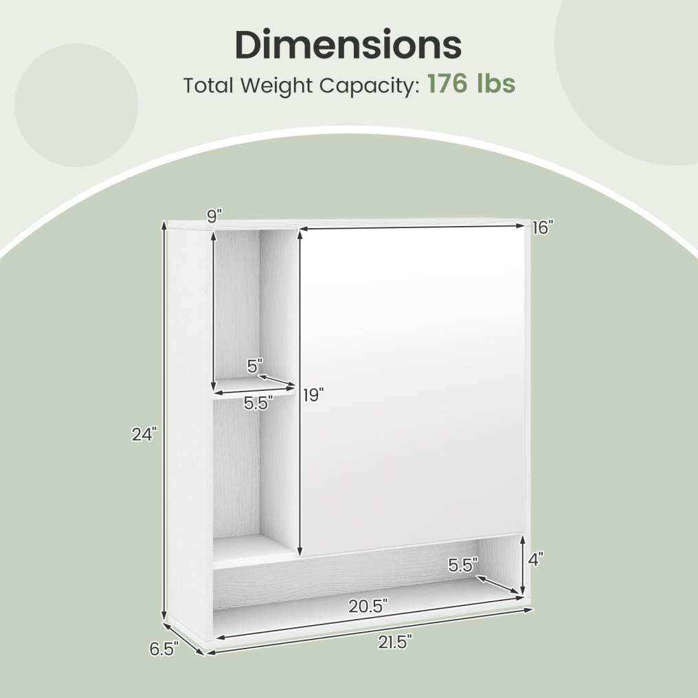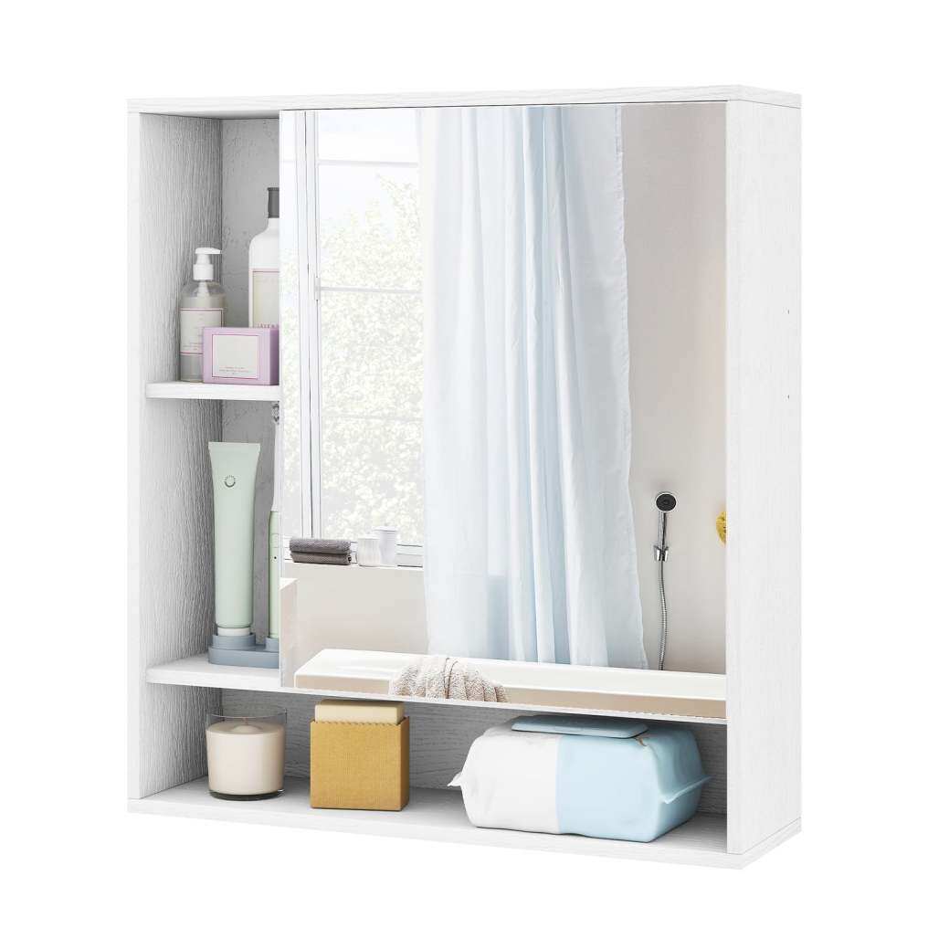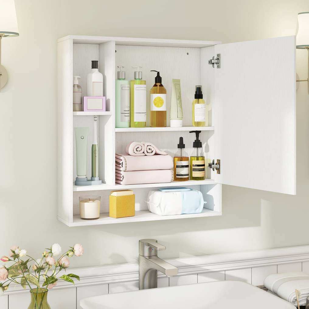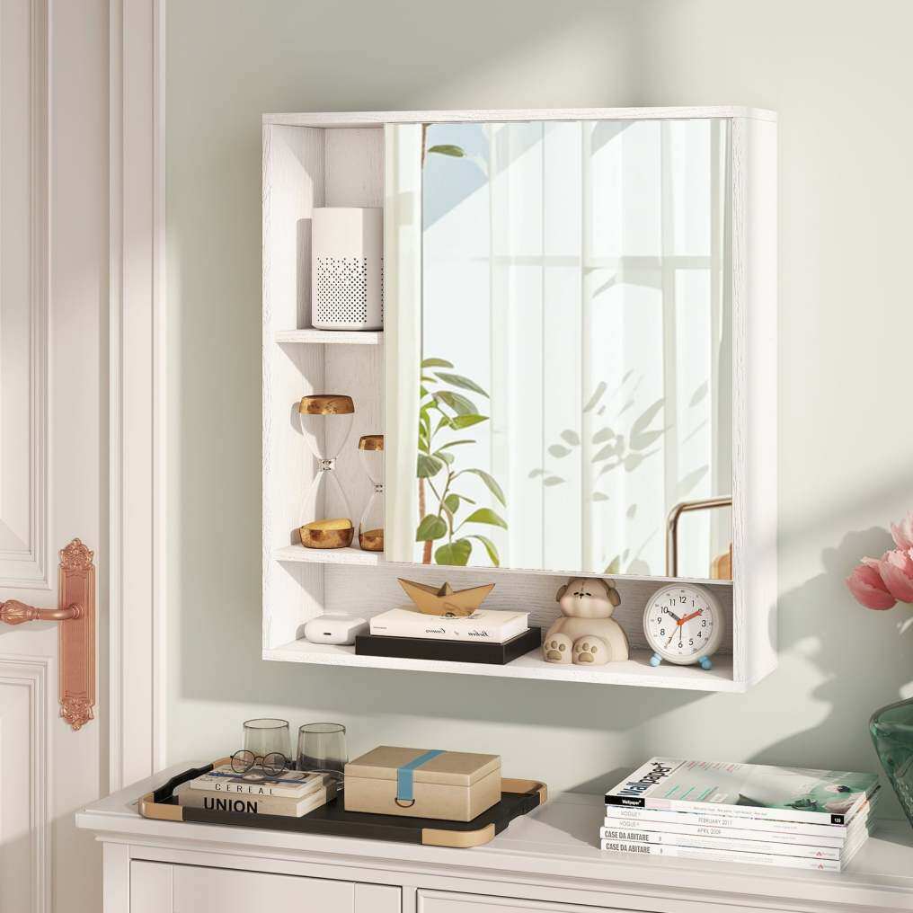 ● Generous Storage Space: This bathroom wall cabinet is equipped with an enclosed cabinet, 2 side shelves and a lower open shelf, offering ample storage space for your cosmetics, skincare products, towels, toiletries and more.