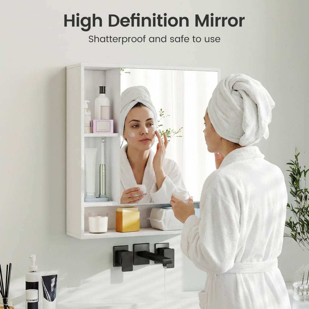 ● 2 in 1 Mirrored Cabinet: Featuring a high definition mirror combined with ample hidden storage, this space-saving wall mounted bathroom cabinet is a smart solution for small bathrooms. Plus, the mirror is shatterproof and safe to use.
