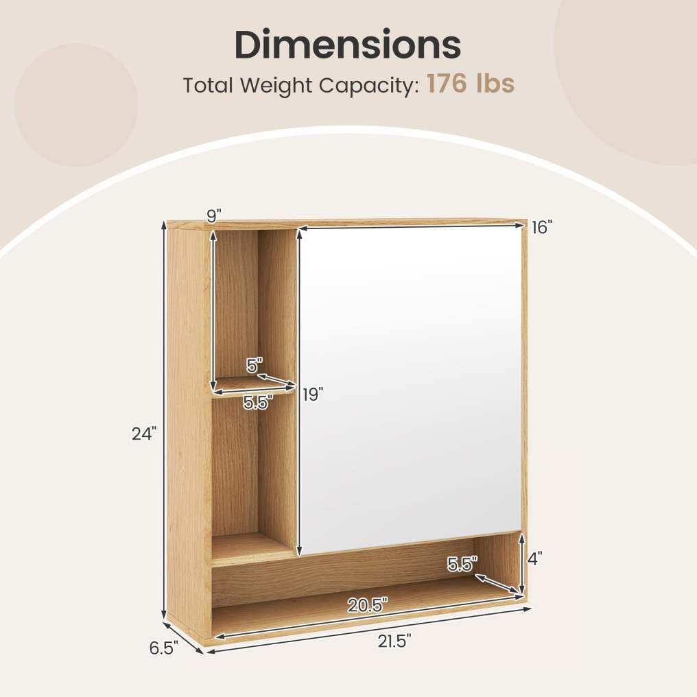● Considerate Design & Easy Care: This wall mounted medicine cabinet is constructed of thick boards and premium metal hinges, ensuring stability and long-lasting durability. The wipe-clean surface makes maintenance a breeze.
